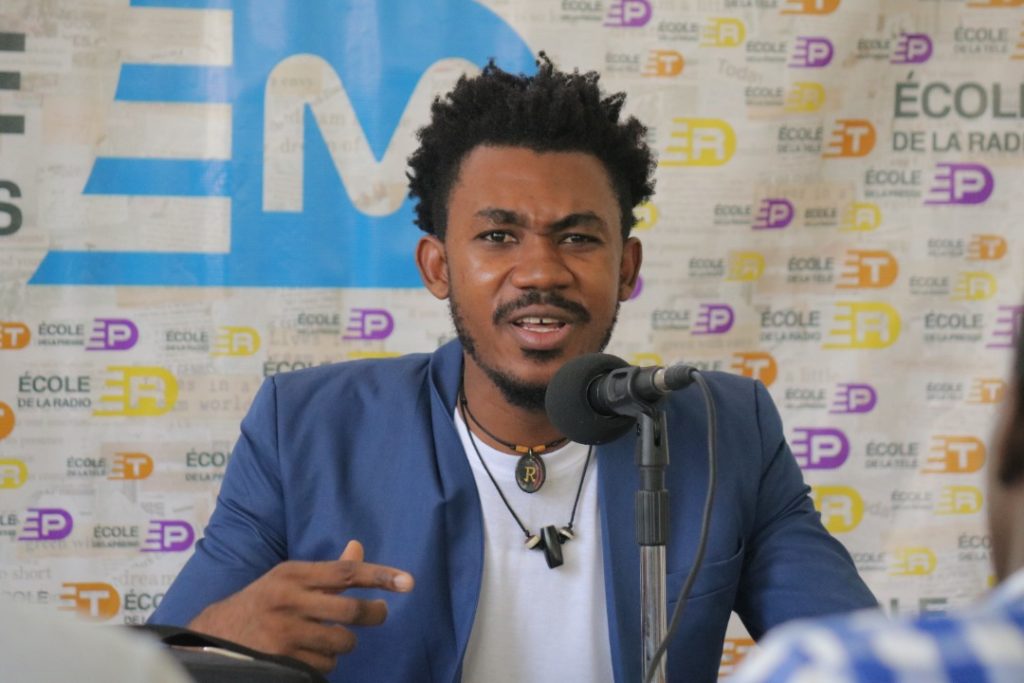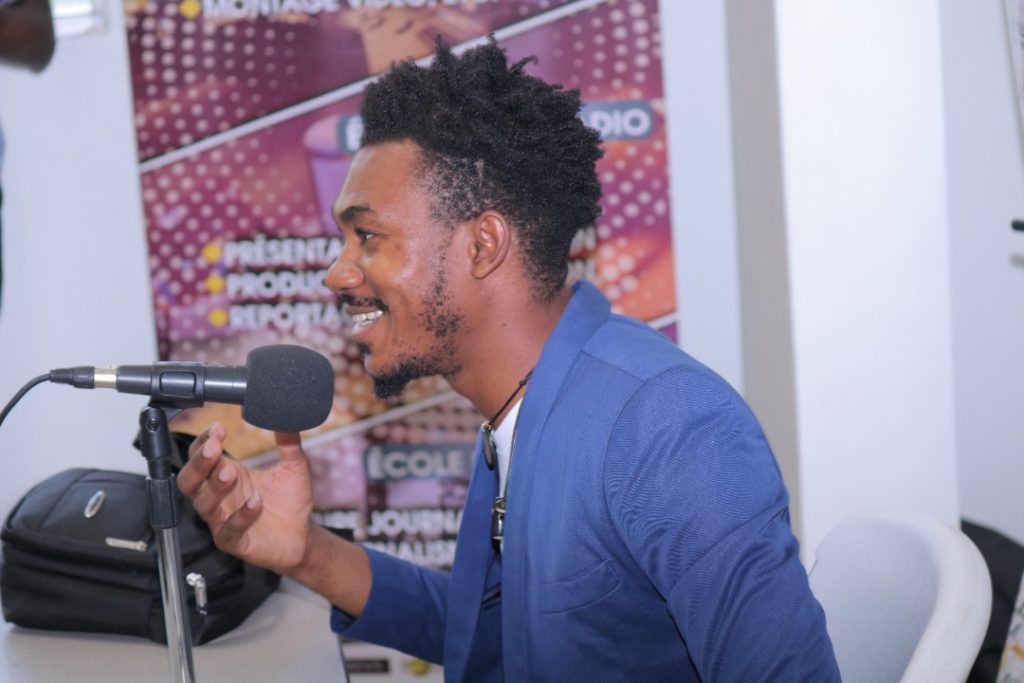 Tout a commencé aux environs de 10 heures du matin. Devant un parterre de futurs journalistes enthousiastes, le deuxième invité d’honneur du MOIS DE LA PRESSE de cette année a fait son entrée sous les regards admiratifs des participant.e.s, curieux.se.s de découvrir la vie et la carrière de la nouvelle voix de « Koze Kilti-RFI ».