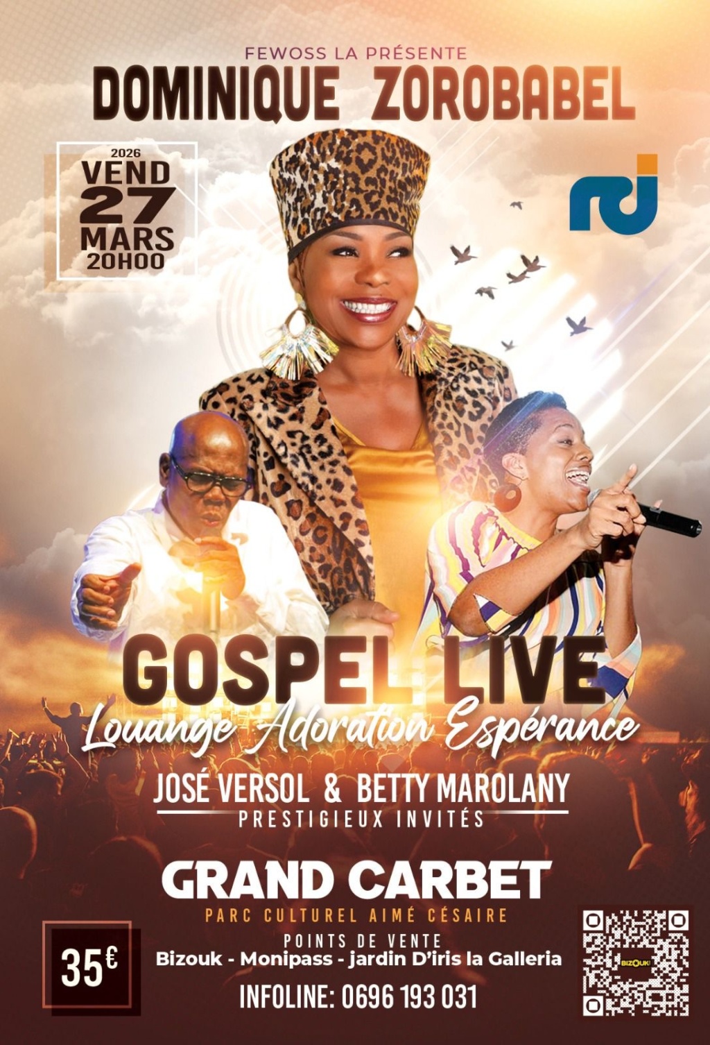 Le rendez-vous est fixé au vendredi 27 mars 2026 à 20h00, au Grand Carbet – Parc Culturel Aimé Césaire. Le public est invité à prendre part à ce moment que l’artiste souhaite « unique et exceptionnel dans la présence de notre Seigneur ». Dans cette perspective, Dominique Zorobabel lance un appel : « Nous allons vivre et partager un moment unique nous serons ce soir-là UN dans un lien d’amour avec Lui ». Une invitation à la communion, au-delà de la scène.