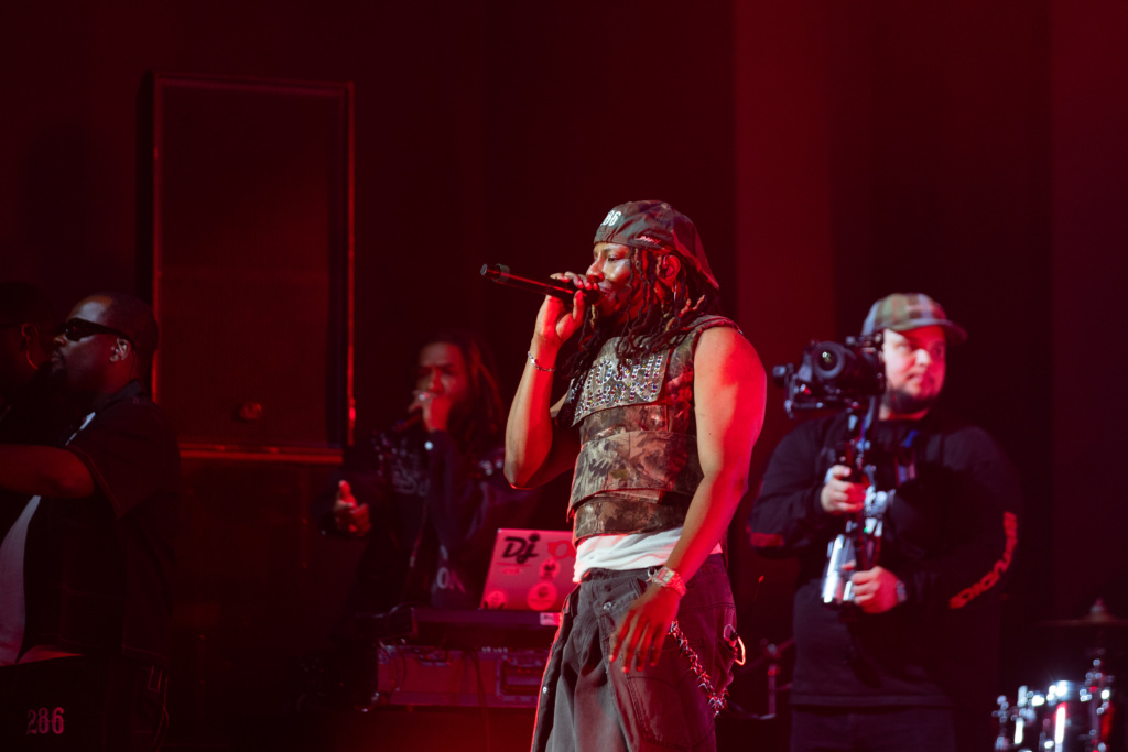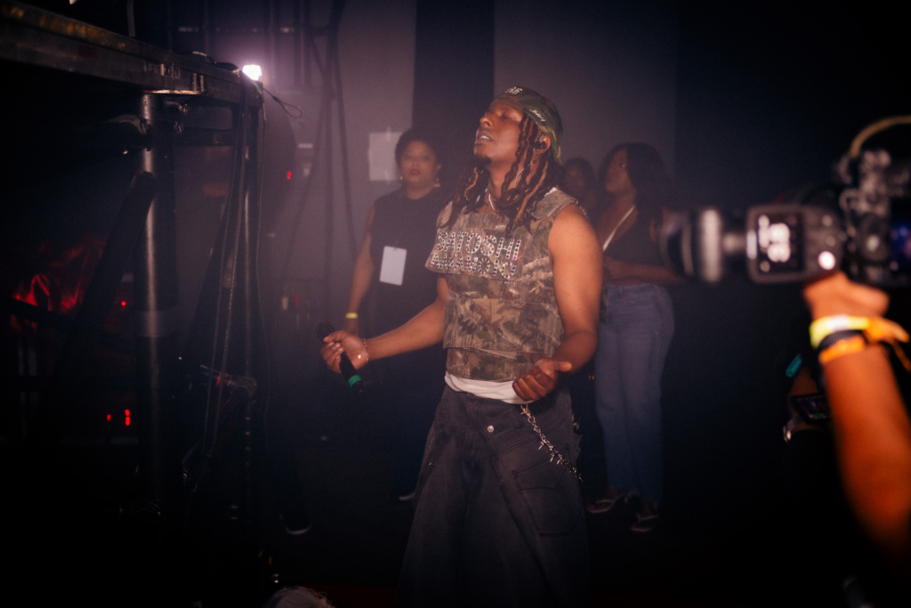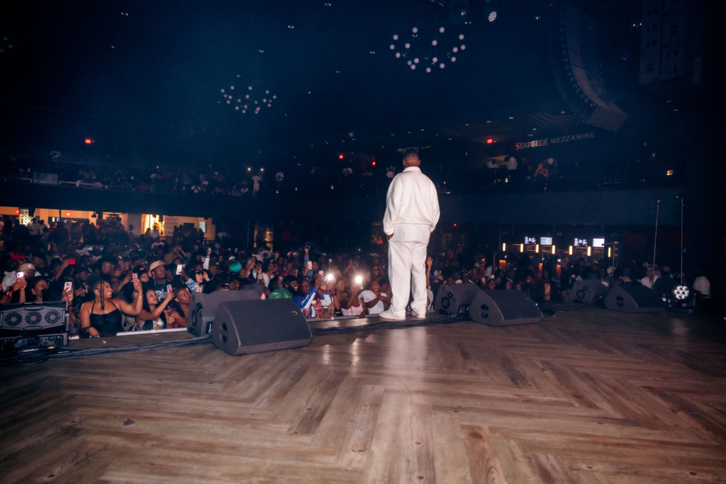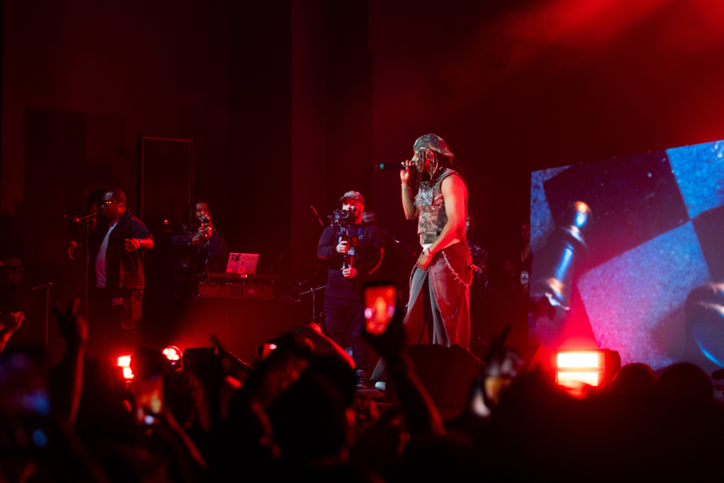 Peu après, Baky Popilè a entamé sa prestation. La première partie du spectacle, orientée vers le rap, s’est ouverte avec « Introduction (Mete Limyè sou mwen) », suivie notamment de « Bay Bondye Yon Beat » et « Peyi Gè ». L’artiste a alterné prises de parole et enchaînements musicaux, maintenant un échange constant avec le public. Des titres comme « Doub Blan », « Sikatris » ou encore « Kite’m motive’w » ont rythmé cette séquence, avant une transition vers « Dènye Lèt ».