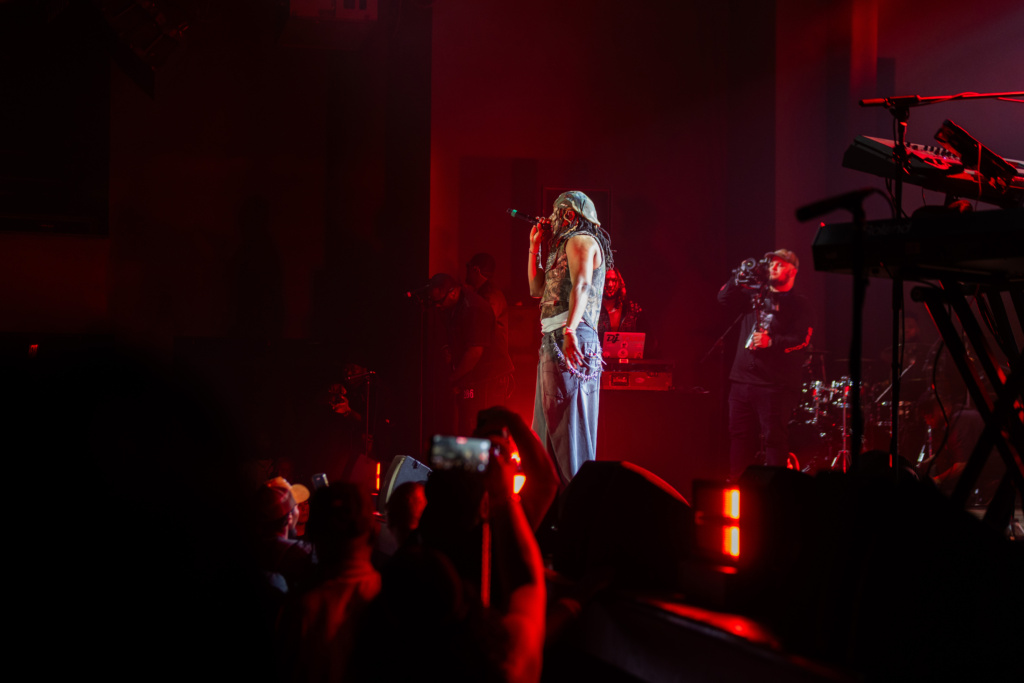 La deuxième partie, plus mélodique, a mis en avant un registre chanté avec « Vid » et « Vagabon Chanje », Feat K-Dilk, qui n’était pas présent. L’artiste a ensuite convié le public à participer, en intégrant des collaborations comme « Ou pa vle » Feat Mickael Guirand, également absent, « Si m te konnen » avec Kenny, ou encore « Bloke ». Cette séquence s’est poursuivie avec « Pote 1 banm » Feat Medjy, qui n’était pas présent non plus, ainsi que « Love pa peye bill » et « 24/7 », dans une atmosphère marquée par une alternance entre moments collectifs et passages plus posés.