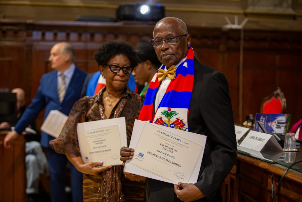Quatre Haïtiens ont été distingués le 15 avril 2026 à Rome lors de la cérémonie du « Peace Award Italy 2026 – Segni di Pace », organisée par la Cattedra della Pace. Il s’agit de Marcken Love Gloire Gens Guerrier, Jean Gardy Charles, Me Eve Jean Baptiste Brown et Vanessa Clergé. Cette dernière, lauréate de l’édition 2025, était présente cette année pour recevoir officiellement sa distinction.